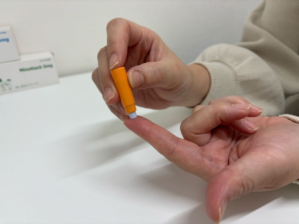 血液検査は注射器ではなく、自分でできるプッシュピンの方式で簡単にできました!