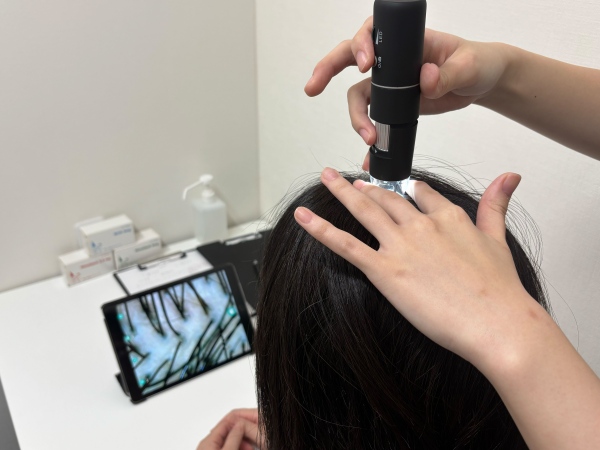 マイクロスコープ(倍率1000倍)を使用して頭皮の状態を細部まで確認します。